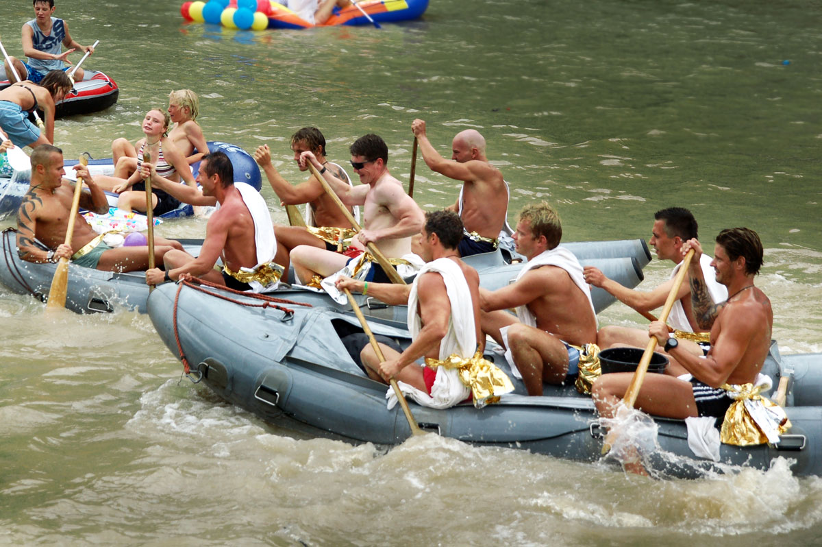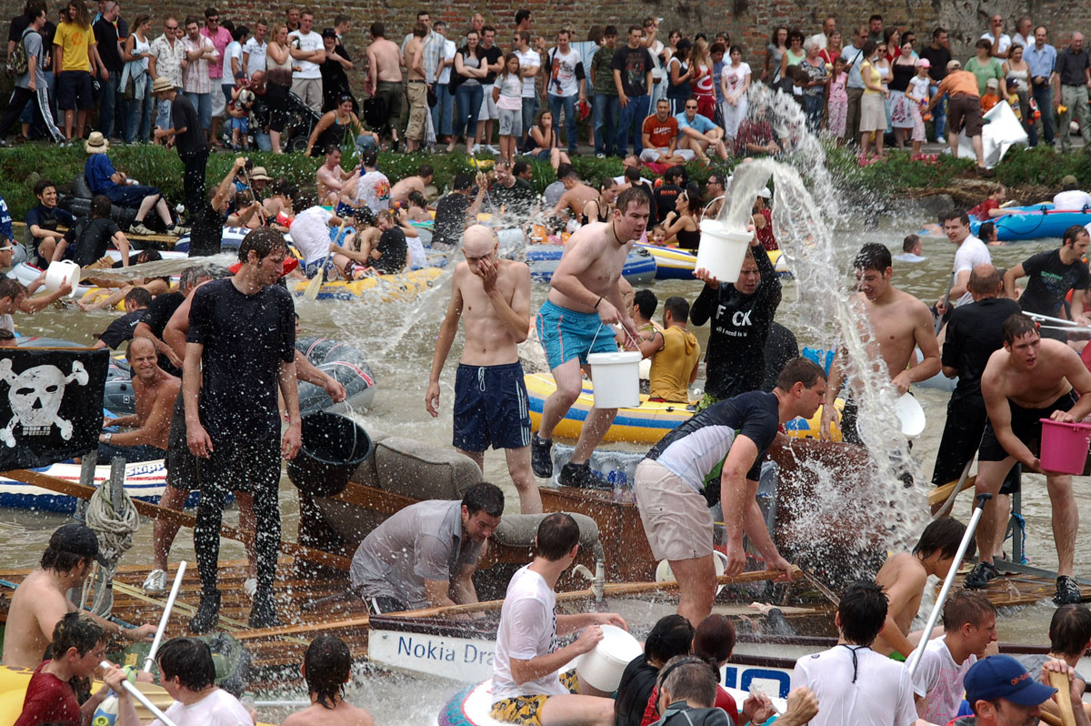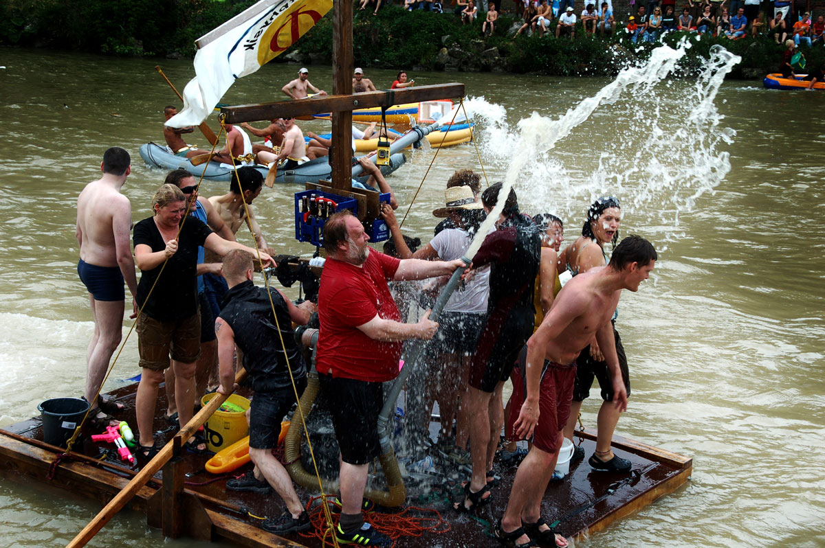 Today “Nabada” has become a cult for those who want to party and have fun with their friends. Inflatable rubber boots and car tires, hand-made rafts or other floating equipment. A carnival parade in front of the crowd sitting on the banks of the Danube river, sipping a cold beer and enjoying the show. No matter who cuts a fine figure in a bikini or who has clearly eaten to excess during the cold winter. All participants have the same purpose during “Nabada”: having fun and pulling buckets of water to your next.