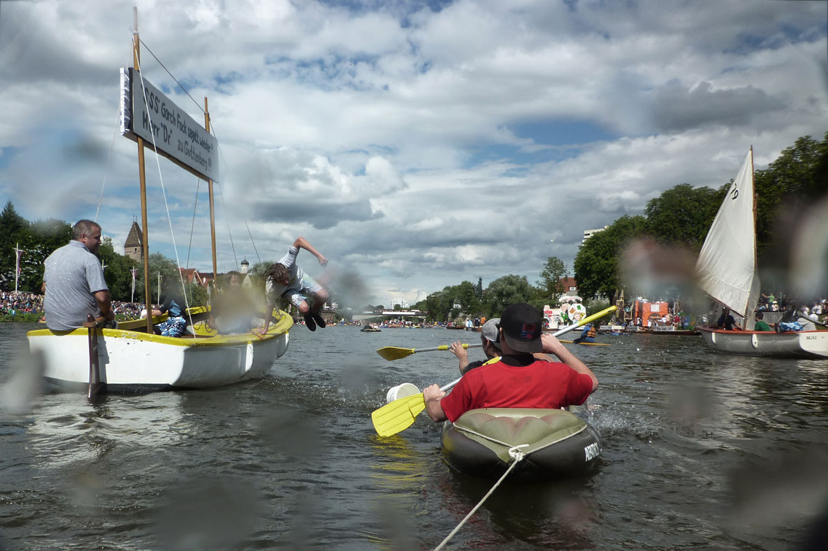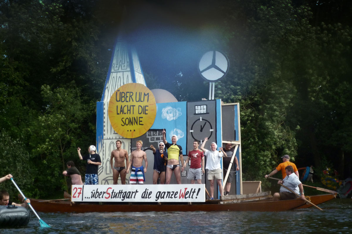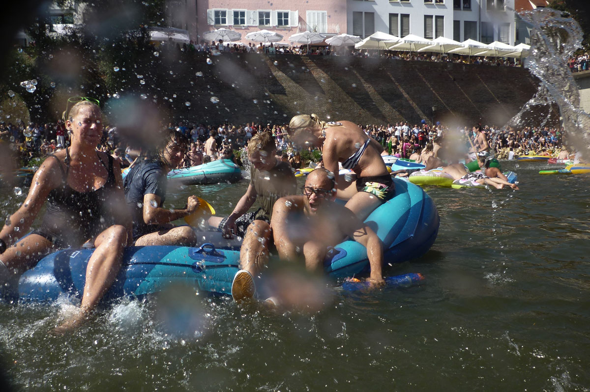 On the third Monday of July in Ulm, a town in the south of German, known for being the birthplace of Albert Einstein, Kepler and hosting the cathedral with the tallest church tower in the world, thousands of people celebrate a colorful and fresh summer event each year on the waters of the Danube. It’s the “Monday of the oath”, an event affiliated to the anniversary of the city’s constitution from 1397. After the traditional morning speech of the mayor, thousands of people meet at 4 pm to celebrate the fun part of this historical event, called “Nabada” (dialect, translated: swimming down).